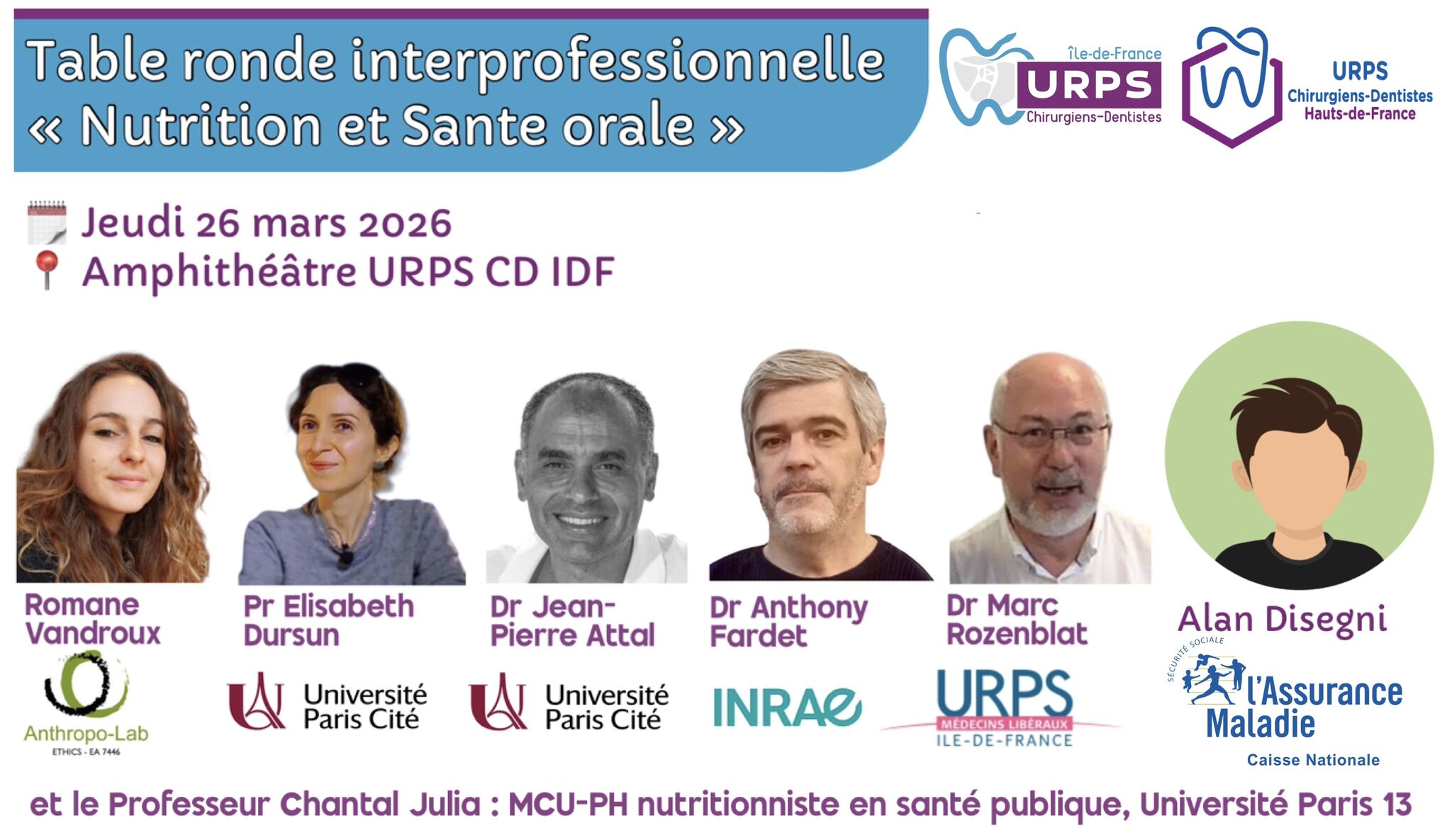 L’URPS Chirurgiens-dentistes IDF et l’URPS Chirurgiens-dentistes HDF vous invitent à une table ronde autour de la nutrition et santé orale, dans une approche de prévention systémique et de la santé globale.